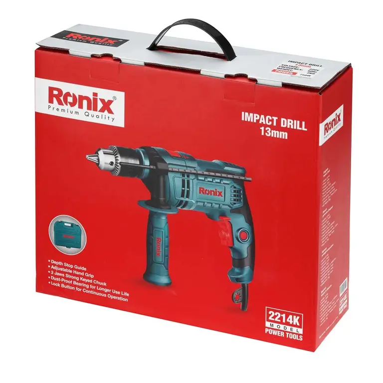 دریل چکشی 2210 رونیکس، با موتور قدرتمند صنعتی 810 وات کار می‌کند؛ مجهز به آرمیچر و بالشتک‌های صنعتی با کیفیت ساخت بالا است و با ترکیب دو نیروی چرخشی و جنبشی (ضربه‌ای) در سطوح بسیار سخت مانند انواع دیوار، عمل سوراخ‌کاری معمولی و سوراخ‌کاری چکشی را به آسانی انجام می‌دهد. سیستم بلبرینگ دوبل در قسمت شفت این دریل، قابلیت متمایزی است که جهت افزایش قابلیت چکشی آن تعبیه شده است. در این دریل، حداکثر سرعت گردش در حالت آزاد، 3000 دور در دقیقه است که به وسیله‌ی کلید الکترونیک دیمردار کنترل سرعت تنظیم می‌شود.سه نظام 13 میلی‌متری، تمام فلزی و مستحکم دریل چکشی 2210 رونیکس، آچاری بوده و آچار تعویض مته در بسته‌بندی آن ارائه می‌شود. وجود میله‌ی عمق‌سنج همراه این ابزار، تعیین و اندازه‌گیری عمق سوراخ‌کاری بر روی سطوح مختلف را برای کاربران ایجاد می‌کند. این دریل قدرتمند رونیکس، عملکرد فوق‌العاده‌ای را در سوراخ‌کاری سطوح مختلف و مصالح بتن، فلز و چوب نشان می‌دهد.برای بررسی بیشتر مشخصات دریل برقی چکشی 13 میلی‌متری آچاری 810 وات 3000 دور رونیکس با مدل 2210، به بخش شرح جزئیات محصول مراجعه کنید.